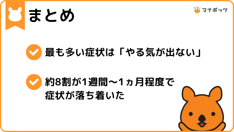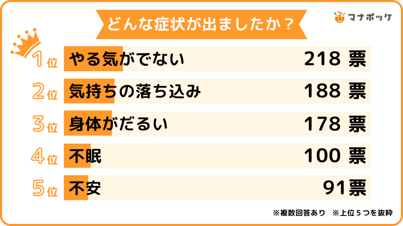最も多い症状は『やる気がでない』