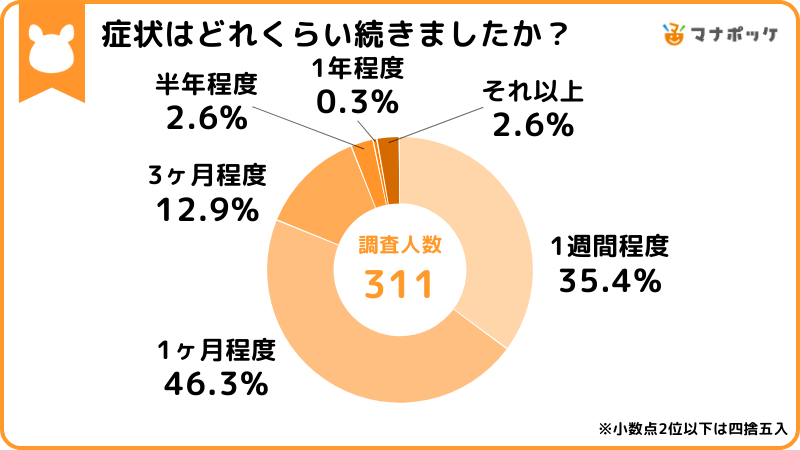 • 約8割が1週間~1ヵ月程度で症状が落ち着いた