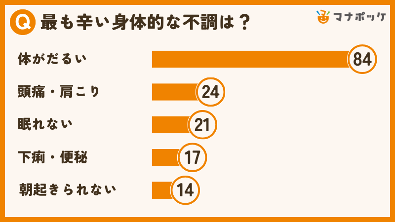 - 身体的な不調:第1位「体がだるい・疲れがとれない」