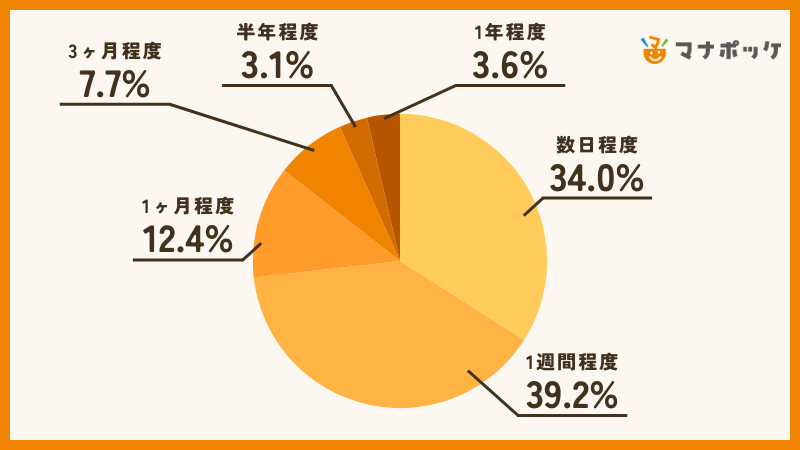 3位:1ヶ月程度 24票(12.4%)