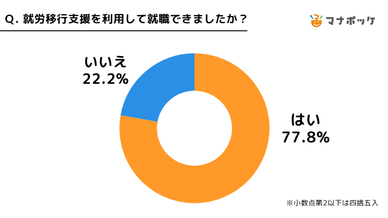 約8割の人が就労移行支援を利用して就職できたと回答。