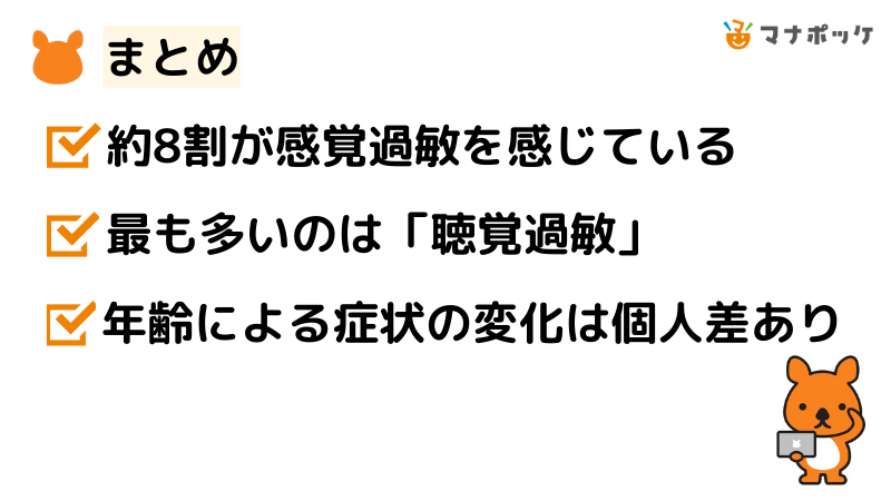 このことから感覚過敏で困りごとや悩みはあるけれど試行錯誤をしながら対策方法を考えて症状とうまく付き合っていけるように工夫をしている方が多いようです。