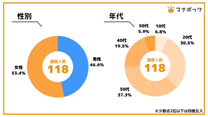 調査人数:118名(男性55名 女性65名)