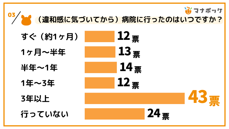 ・違和感に気づいてから3年以上 43票(36.4%)