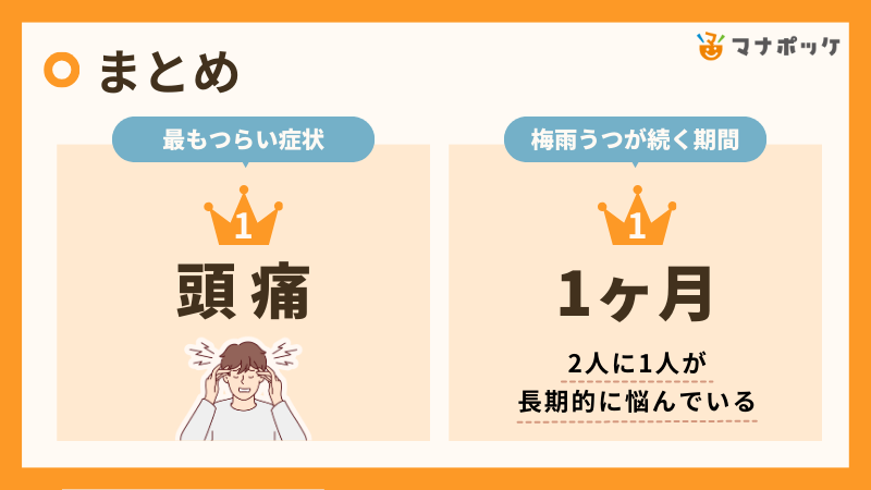 このことから、多くの人が長期的に梅雨うつの症状に悩まされていることが分かりました。