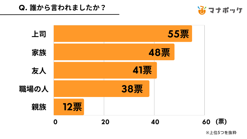 この項目では、家で療養しているタイミングで家族から言われたという方がほとんどでした。