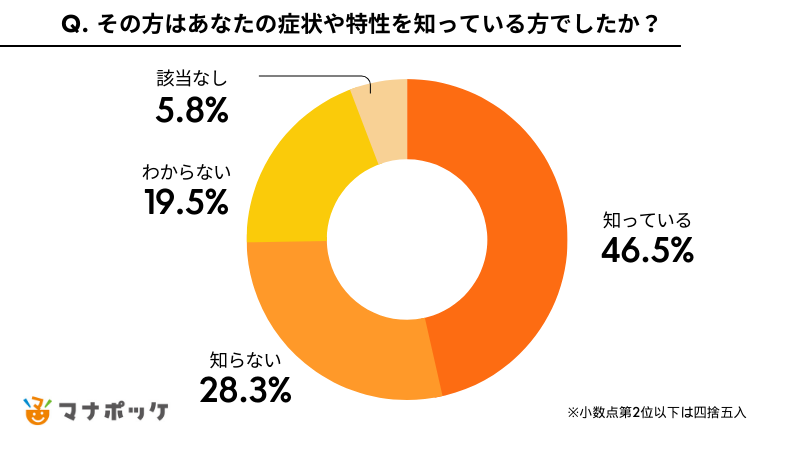 46.5%は「特性を知っている」人からの言葉に嫌な思いをしたことがわかりました。