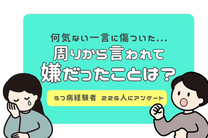 今回はうつ病・うつ病経験のある方226名を対象に、周りから言われて嫌だったことを調査しました。